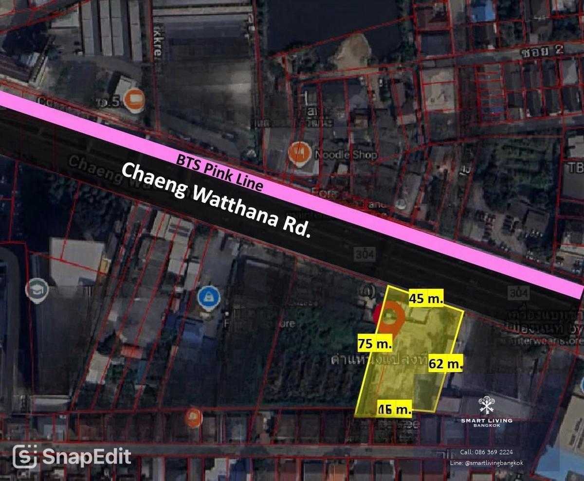 π π Beautiful land plot on Chaeng Watthana main road, located in a Brown Zone (Y.8) High-potential land suitable for residential development, community mall, office building, or commercial projects.Convenient access, close to BTS and key Chaeng Watthana